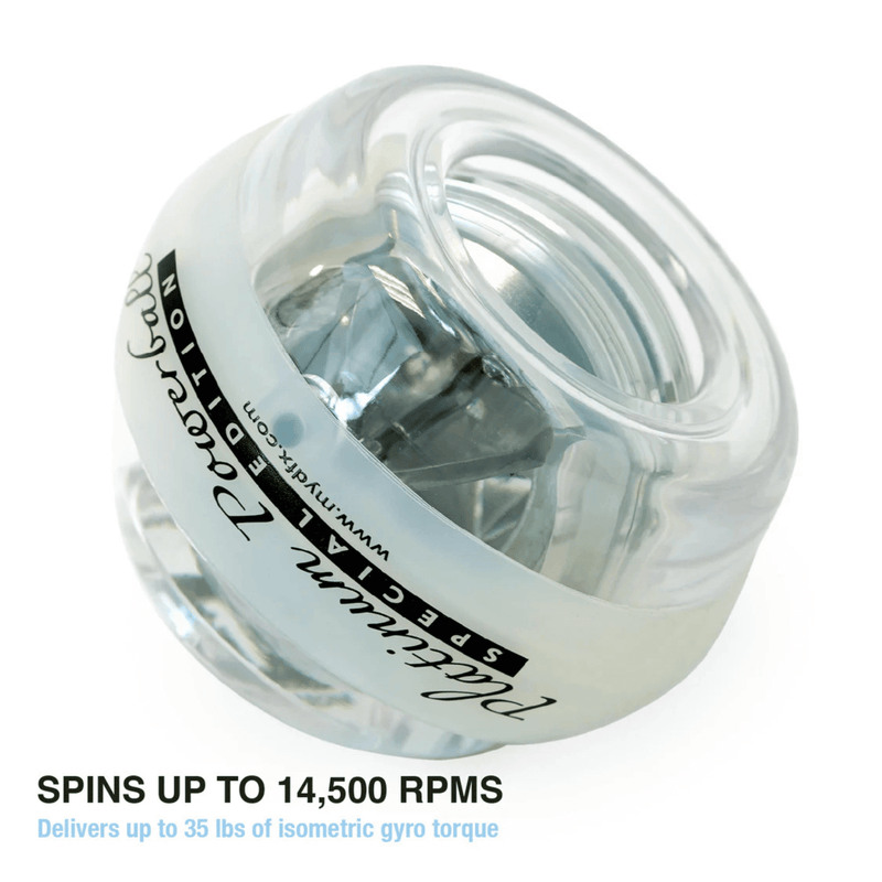 The DFX Lighted Powerball Platinum Edition is a compact, portable gyroscopic resistance trainer that combines visual excitement with serious strength-building benefits. Featuring six ultra-bright LEDs in white, blue, or green, it creates a stunning light show that intensifies as you spin, providing instant visual feedback and motivating every session. Beyond the glow, it delivers dynamic resistance that adapts to your pace, targeting the wrists, forearms, biceps, triceps, and shoulders to build real strength, endurance, and coordination. Ideal for athletes, musicians, climbers, gamers, or anyone looking to improve grip strength, mobility, and muscle tone, it also supports rehabilitation by helping alleviate symptoms of Carpal Tunnel Syndrome, Tendonitis, and repetitive stress injuries. Small enough to fit in a gym bag, desk drawer, or backpack, the Powerball Platinum Edition makes training or recovery possible anytime, anywhere, while its responsive gyroscopic resistance ensures every spin becomes a personal challenge, turning rehab and performance training into a fun, engaging, and motivating experience.