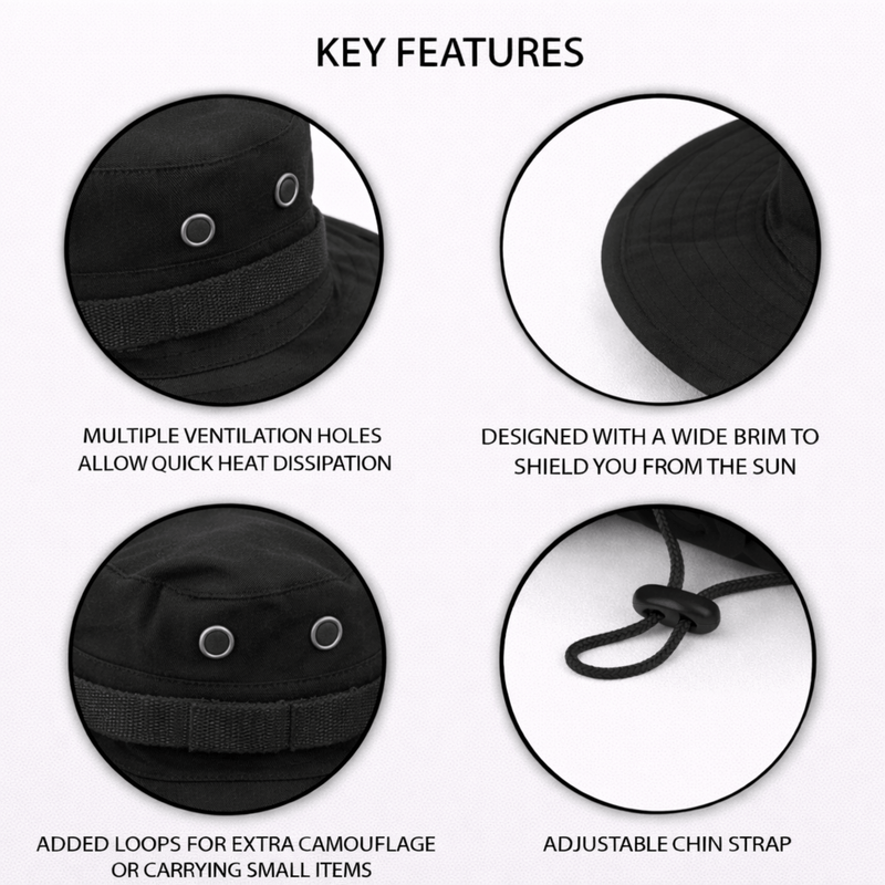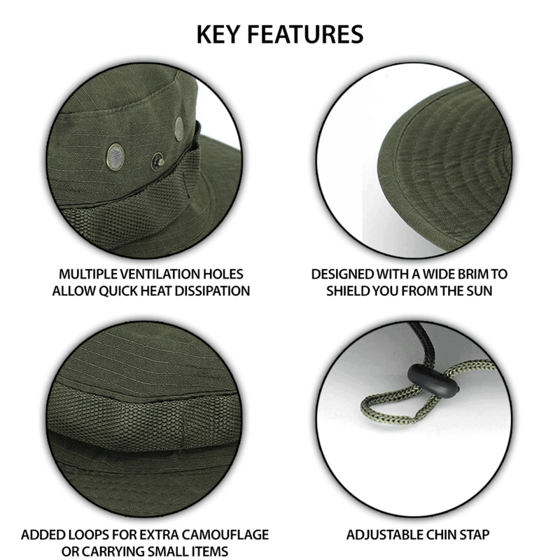 Breathability is key, so XG-BH1 Men's Tactical Army Boonie Hat has vent holes along the crown that circulate air through the interior for a cool, comfortable fit. Whether you are out in the field or spending a leisurely day in the outdoors, good head coverage and sun protection is crucial. Constructed specifically to provide ample cover and concealment for any environment where you need to stay cool and functional.